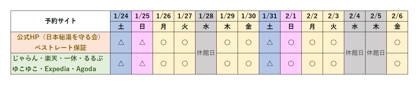 ※設備メンテナンス・修繕などで臨時休業する場合があります。ご了承くださいませ。